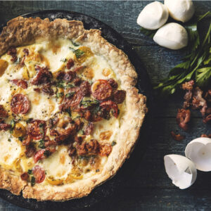 Classic Italian flavours come together to add a touch of love to the standard breakfast quiche. Make sure to seed your tomatoes, as the extra moisture from the tomatoes will prevent the quiche from setting. Serve with a kale or arugula salad to balance the sweetness of the tomatoes and richness of the egg and cheese.